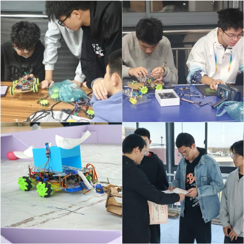 比赛分为赛前培训、瑞士轮预赛和淘汰赛三个阶段。在培训环节,组委会为各队伍分发了制作材料并组织了专题课程与技能考核,确保参赛同学具备必要的理论基础与实践能力。随后的比赛中,各队伍巧妙设计小车结构与控制方案,展现出丰富的创新思维与临场应变能力。经过多轮激烈角逐,最终决出冠、亚、季、殿军。